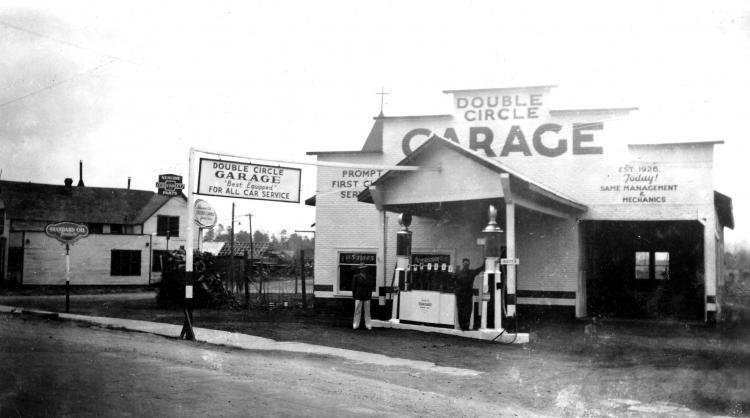Double Circle Garage serviced autos of Route 66 travelers starting in 1926. The façade, modern for its time, still displays a sign that is easy-to-read for motorists. The sign announces that this place, one of Flagstaff’s first gas stations, still repairs automobiles.