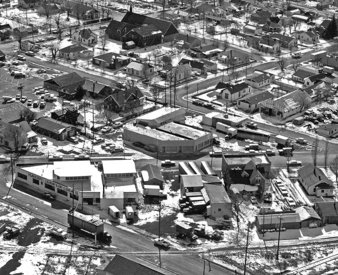 On this same corner but across the street is the Downtowner Motel, which operated as brothel, hotel, tourist and auto court and motel over the years. It is here that someone murdered a sleeping couple in 1916. High above is the Downtowner’s tall metal tower, erected in the 1930s to compete for lost business after Route 66 was relocated on the north side of the railroad tracks. The lattice mast looks like the radio towers that became so popular in that era.