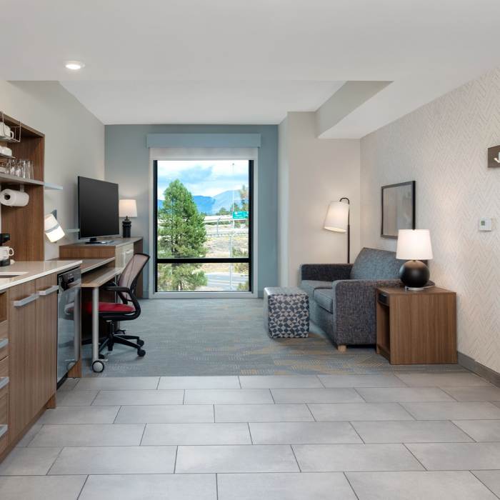 Start your adventure at the pet-friendly Home2 Suites Flagstaff, located at the gateway of the I-17 and I-40. Just over a mile from NAU campus and 3 miles from Downtown and Lowell Observatory, we are the perfect launching pad for a visit to the City of Seven Wonders. Venture a little farther and reach Arizona Snowbowl, Williams/Route 66, Sunset Crater, and Sedona all in under an hour. The beauty of the Grand Canyon sits just under 1 hour and 20 minutes away while Lake Powell is also a scenic 2-hour drive north. Return from your excursion to our year-round indoor heated pool or unwind in the lobby with some friendly competition at our foosball table and board games. We'll have 24/7 coffee waiting for you in the lobby and free hot breakfast served daily, so you can properly fuel up for whatever brings you to this Ponderosa pine escape.