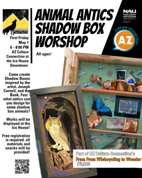 Come create Shadow Boxes inspired by artist Joseph Cornell, and by the Book, Fuzz - what antics can you design for some shadow box animals? This is only one part of the From Wishcycling to Wonder Night at AZ Culture Connections!