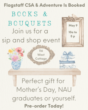 Our Books and Bouquets event is a chance to treat that special person in your life and shop local. Consider this a unique and thoughtful gift for: Mother’s Day, NAU commencement, or yourself. Just because.