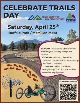 Enjoy Flagstaff's beautiful trails on Celebrate Trails Day! PROSE will host a bike ride of McMillan Mesa Loop Trail, and a walk around Buffalo Park.