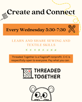 What is Create + Connect? C+C is a weekly open studio time on Wednesdays from 5:30-7:30 pm where you can bring any sewing/textile project to our studio, work with our tools, get help from our sewists, and make new friends! This studio time is donation based/ pay-what-you-can! All are welcome, including kiddos with an accompanying adult.