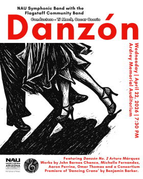The NAU Symphonic Band and Flagstaff Community Band are excited to welcome the Flagstaff Community for a wonderful evening of music featuring “Danzón No. 2” by Arturo Márquez. Included on the program are works by John Barnes Chance, Michelle Fernandez, Aaron Perrine, Omar Thomas and a Consortium Premiere of 'Dancing Crane’ by Benjamin Barker.
