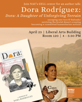 Join NAU’s Global Engagement and Language Learning Center as they host author and activist, Dora Rodríguez for an author talk and reading from her memoir, Dora: A Daughter of Unforgiving Terrain.