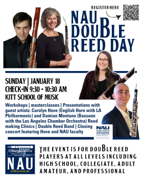 Four Masterclasses (collegiate oboe, collegiate bassoon, high school oboe, high school bassoon). Please email shane.werts@nau.edu if you are not an NAU student and are interested in performing in the masterclass