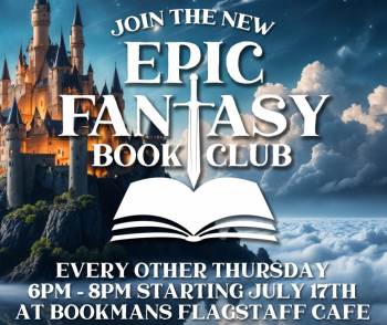 Calling All Epic Fantasy Fans! Join the New Epic Fantasy Book Club at Bookman’s Flagstaff Café What to Expect: At our first meeting, we’ll vote on which fantasy book or series to begin. From there, we’ll dive into a new set of chapters every two weeks and gather to explore plots, characters, and theories together. Who: Adults who love to get lost in worlds of magic, dragons, and daring quests Why Join? Because no epic fantasy lover should go without a fellowship! This club is your chance to connect with others who are just as passionate about immersive storytelling and sweeping sagas. Club Organizer: Katharina Christman christmankatharina@gmail.com Let’s turn the page together and embark on our next great adventure—one chapter at a time.
