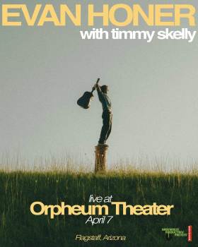 Greenhouse Productions presents Evan Honer with Timmy Skelly on Tuesday, April 7th, 2026 at the historic Orpheum Theater in downtown Flagstaff, AZ. ALL AGES | DOORS: 6:00PM | SHOW: 7:00PM