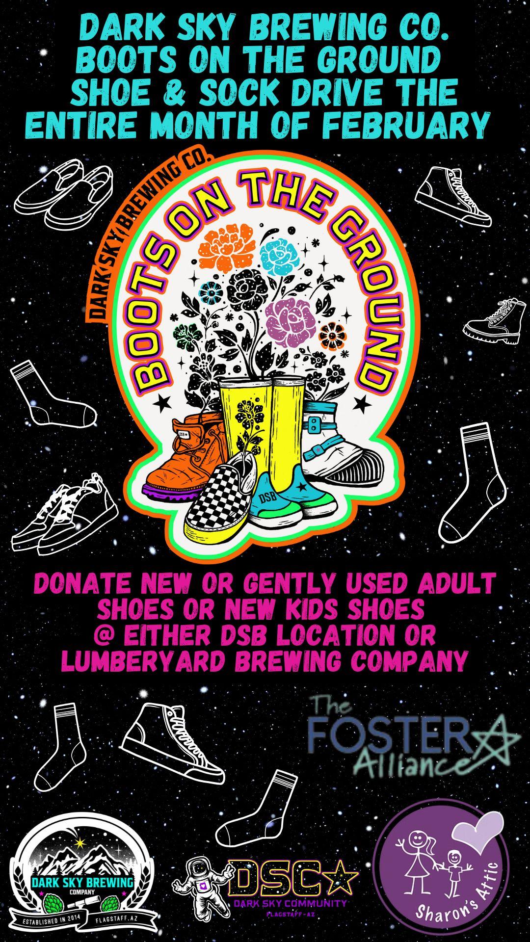 Boots on the Ground Shoe Drive: The entire month of February. Items donated will go to Sharon's Attic and The Foster Alliance. Donate new or gently used adult shoes or new kids shoes at either DSB location or Lumberyard Brewing Company.