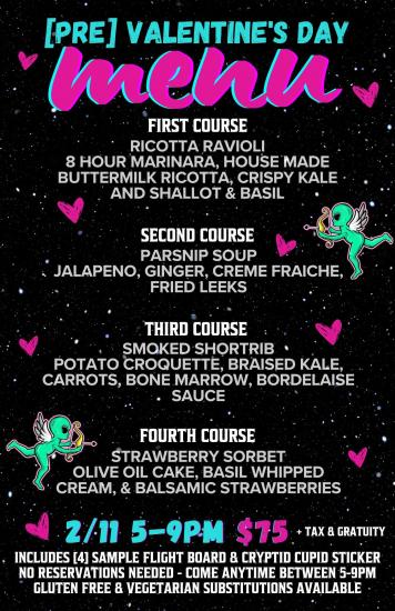 2/11 DSB Valentine's Dinner with DSB beer pairings @ DSB Beer Garden 5-9pm 2/12 TAPP'D Trivia 7-9pm 2/13 Elaina Nixon Artist Pop-Up in the taproom @ 6pm 2/13 Pluto Pub Crawl/ I Heart Pluto Festival. Astronomer & Pluto Paloma drink special @ the Beer Garden