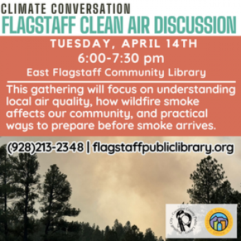 Wildfire smoke is an increasing reality in Northern Arizona, and it can have real impacts on our health and daily lives. This gathering will focus on understanding local air quality, how wildfire smoke affects our community, and practical ways to prepare before smoke arrives. Come learn about tools, resources, and simple actions that can help protect you, your household, and your neighbors during smoke events.