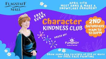 It's Character Kindness Club with a different beloved Character and craft each month!* April Character Kindness Club welcomes Queen Anna! Located in the Entertainment area by JCPenney .Dress up as your favorite character, enjoy a FREE Photo Experience, and take home a craft. April Craft: Make & Take a Snowflake Ornament Plus, show a mall receipt or donate $10 to this month's charity for face painting! All activities and photo activations are FREE and while supplies last! See you there! And save the date! May welcomes Darth Vader!*exact characters and appearance dates are subject to change.