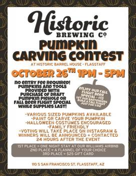 No Entry Fee Required!! Pumpkins and tools provided with purchase of draft Pumpkin Piehole or Fall Beer Flight Special while supplies last! On Sunday Kids Eat Free and Live Music from 1-3. Halloween Costumes Encouraged. Candy Corn Counting Competition!!