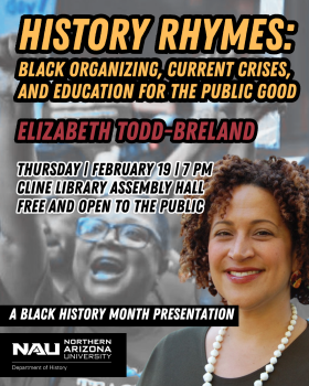 Join NAU History for Black History Month with visiting professor Elizabeth Todd-Breland of the University of Illinois - Chicago.