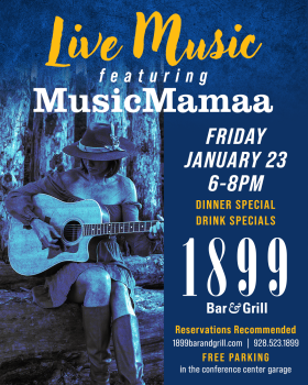 Food and Drink Specials 3-8PM Don't miss this unique opportunity to enjoy amazing food and local music. Reservations recommended | 307 W DuPont Ave | 1899barandgrill.com | 928.523.1899 FREE PARKING in front of restaurant or inside the conference center garage with validation at the 1899 host desk.