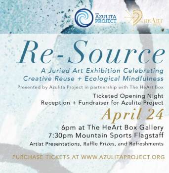 Presented by Azulita Project in partnership with The HeArt Box, Re-Source invites artists and viewers alike to rethink materials, waste, and the role of art in a more sustainable future. The exhibition features innovative, thought-provoking works created from recycled, repurposed, biodegradable, and locally sourced materials—highlighting how creativity can align with environmental stewardship. This dynamic show brings together artists who are reimagining their practices through the lens of sustainability, offering fresh perspectives on consumption, waste, and the lifecycle of materials. Mountain Sports Flagstaff is proud to support Azulita Project through our 1% for the Planet initiative, where we commit 1% of our sales to local environmental partners working to protect and preserve our planet. Re-Source is co-hosted by Peak Scents and Winter Sun Trading Co, and supported by Kahtoola, SOL Mobile Wellness, Foxglove Gardening, Mother Road Brewing Company, and Squirrel’s Nut Butter. Stop by opening night to experience the exhibition, connect with community, and celebrate art that inspires more mindful living. Exhibition Dates: April 24 – May 31, 2026 Opening Reception: Friday, April 24 | 7:30 PM Location: Mountain Sports Flagstaff