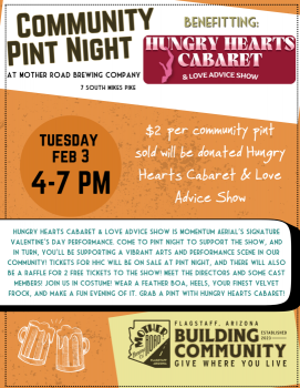 Join us in supporting Hungry Hearts Cabaret (HHC) & Love Advice Show for a Pint Night at Mother Road Brewing Company.