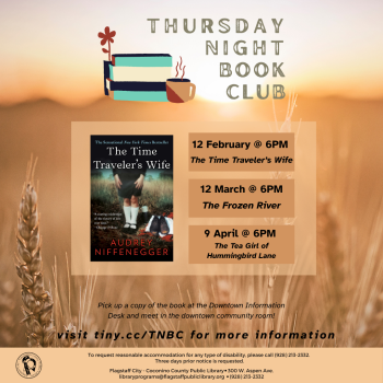 This month, we are reading The Time Traveler's Wife by Audrey Niffenegger. Copies are available at the Downtown Information Desk. This is the extraordinary love story of Clare and Henry who met when Clare was six and Henry was thirty-six, and were married when Clare was twenty-two and Henry thirty. Impossible but true, because Henry suffers from a rare condition where his genetic clock periodically resets and he finds himself pulled suddenly into his past or future. In the face of this force they can neither prevent nor control, Henry and Clare's struggle to lead normal lives is both intensely moving and entirely unforgettable. We will meet in person in the Downtown Library Community Room.