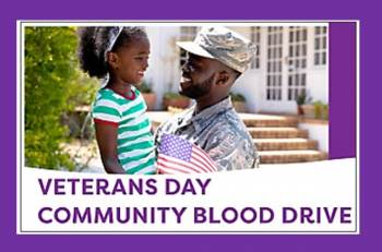 Join the Veterans Day Community Blood Drive on Nov. 11, 1 PM–6 PM in Retail Space A003 by JCPenney.