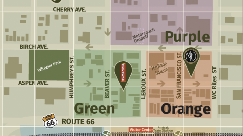Includes up-to-date listings and locations of dining options in the downtown area. This map is also useful to guide you through the historic area of Flagstaff.