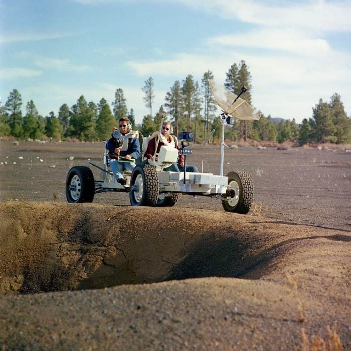 A recently released film was privately produced from archival material (visual and audio) retrieved from the period of the Apollo program. The exploration experience is further enhanced by including brief clips of familiar music during the Apollo era - this provides another dimension to the visual scenes. This :55-minute movie about the Apollo 15 mission includes a few clips showing members of the Flagstaff USGS Branch of Astrogeology support team down in Mission Control/ Houston during the mission.