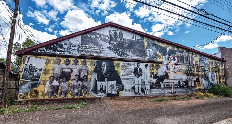 Large-scale mural that celebrates Flagstaff’s African American community and their contributions to Flagstaff’s culture, growth and development. Comprised of a series of pasted photographs of noted individuals and families. The mural’s imagery serves “as a time machine, allowing the viewer a window into the past while honoring the present. Created by artist Jetsonorama, and collaborating artist Kill Joy.